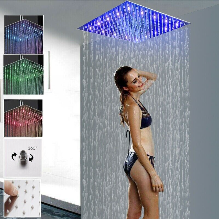 16inch LED Shower Head Wall/ceiling Mount Rain Square Top Sprayer Brushed Nickel