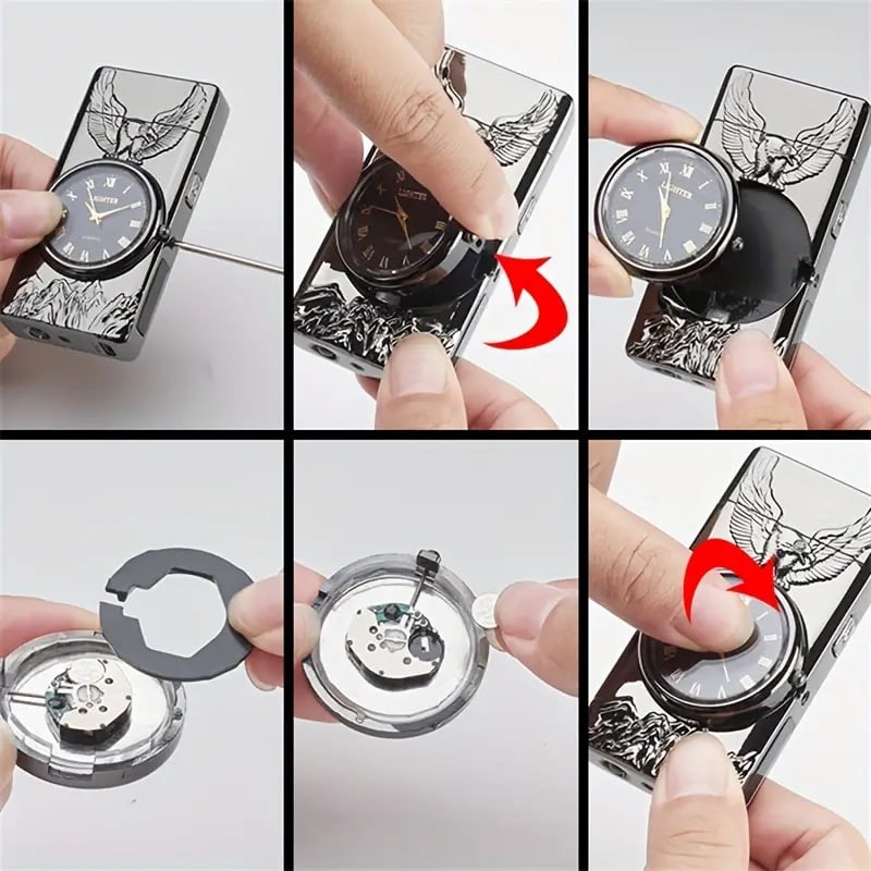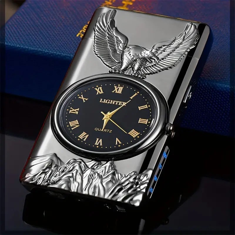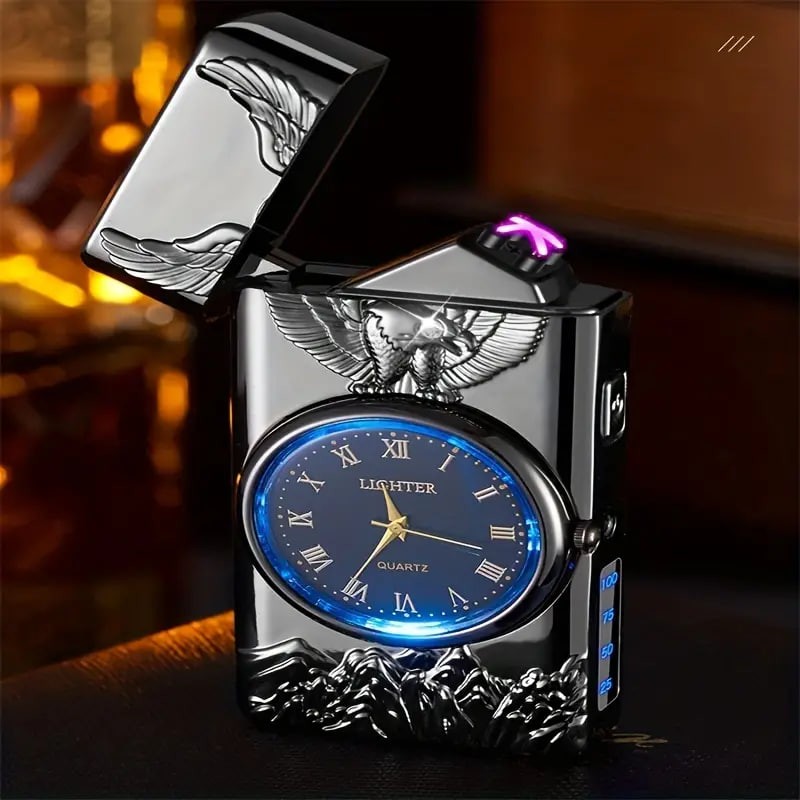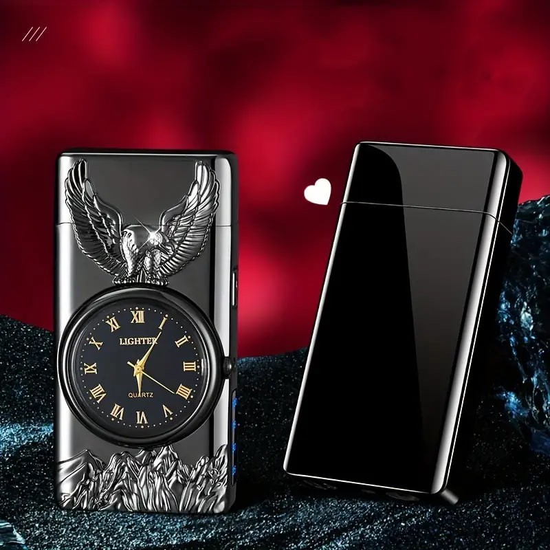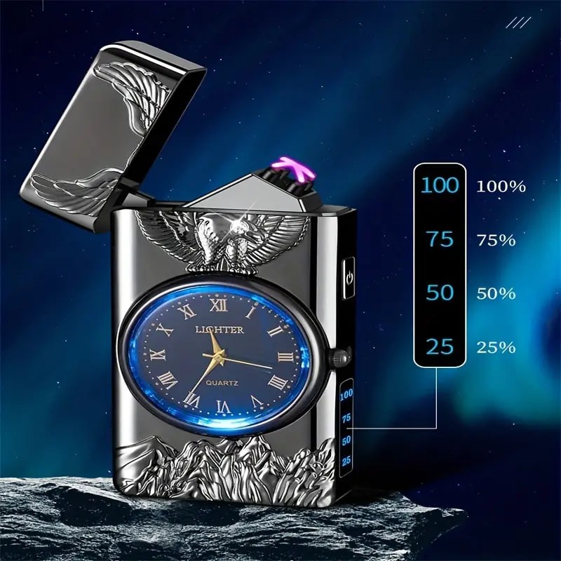 1pc Double Arc Lighter Embossed Eagle Cool Real Dial LED Lighting Charging Igniter