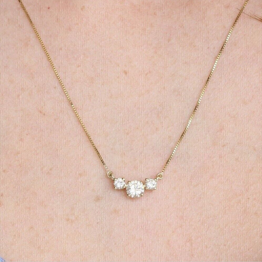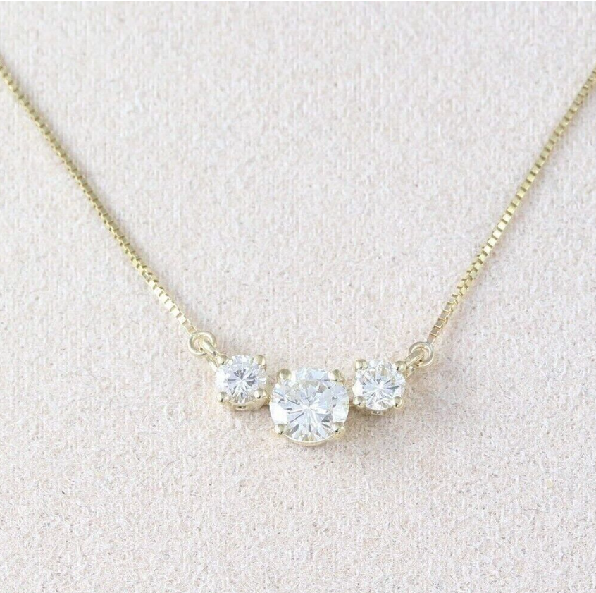 2 Ct Round Simulated Diamond Three Stone Pendant Necklace 14k Yellow Gold Plated