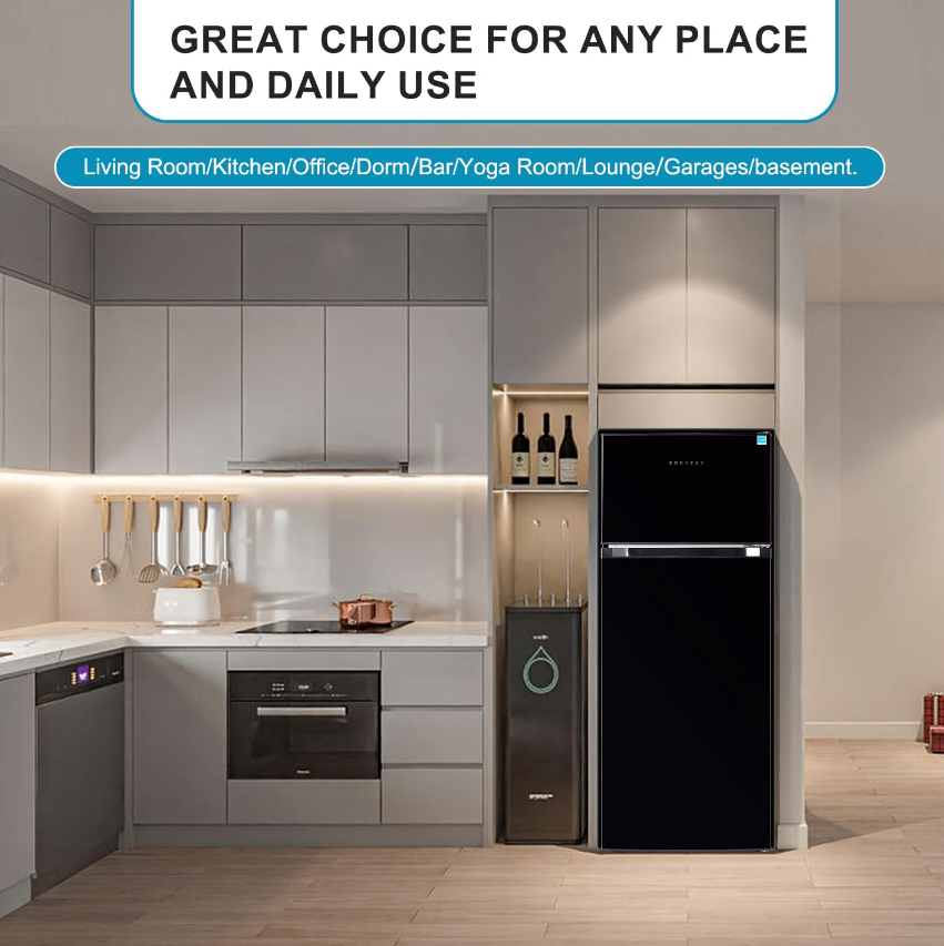 • Whisper-quiet Operation: Our 2 door fridge has engineered a whisper-quiet compressor that is virtually undetectable when it works on and off. Therefore, this fridge with freezer is perfect for dormitory, office, bedroom, lounge, bar, garage, man cave.