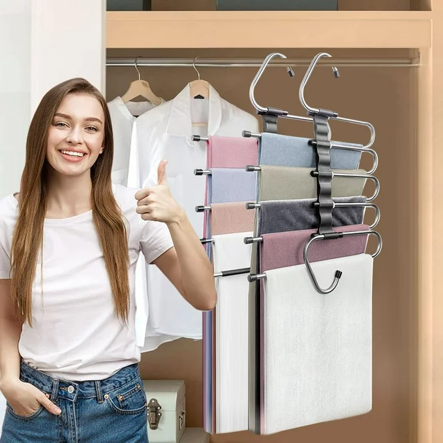 【80% Space Saving】-This is a unique vertical/horizontal two use multifunctional pants rack hanger.Each one can holds up at least 5 pants or jeans.Maximum saving space,and keeping your closet neat and tidy.