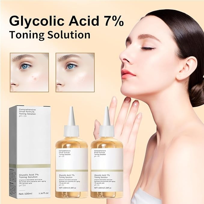 2PCS Ordinary Glycolic Acid 7% Toning Resurfacing Solution,Exfoliate,and Rejuvenate Your Skin, Solution for Blemishes and Acne-100ML