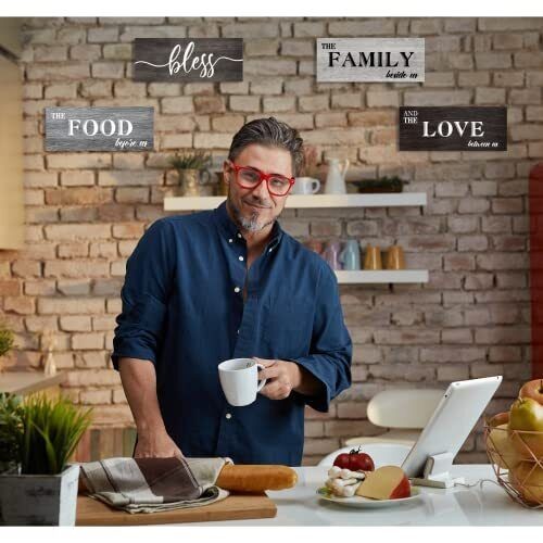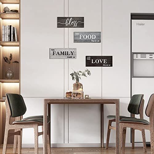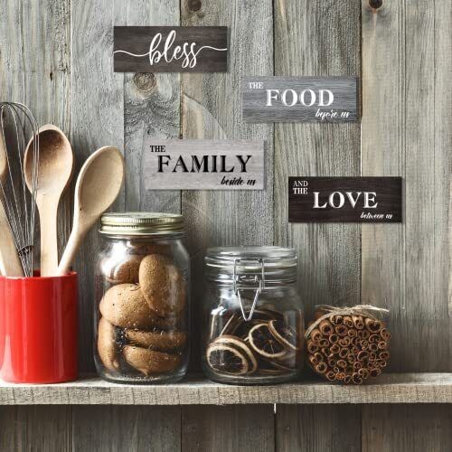 4 Pieces Bless Food Family Love Signs for Kitchen Wall Decor Plaque