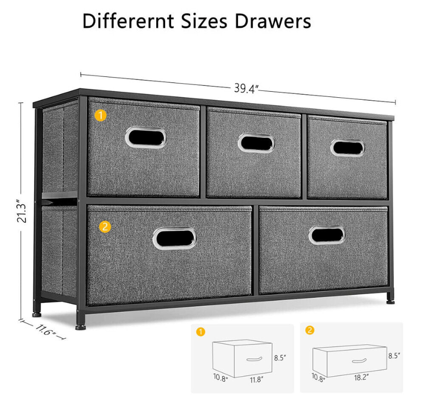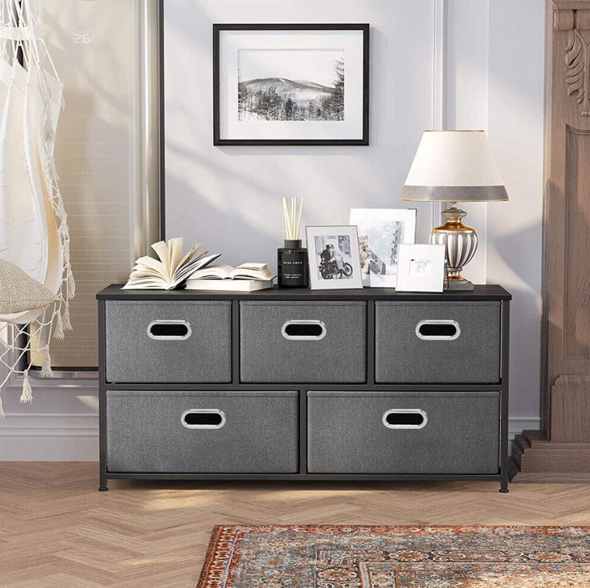 5 Fabric Drawers Storage Cube Bins Dresser Organizer Cabinet Bedroom Living Room