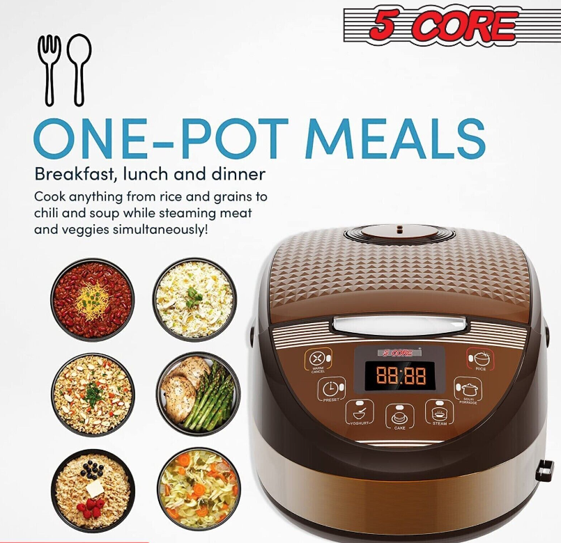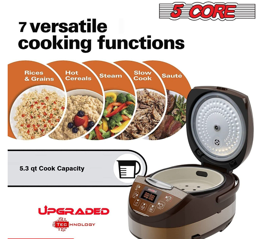 5Core 5.3 Qt Asian Style Programmable All-in-1 Multi Cooker, Rice Cooker, Slow