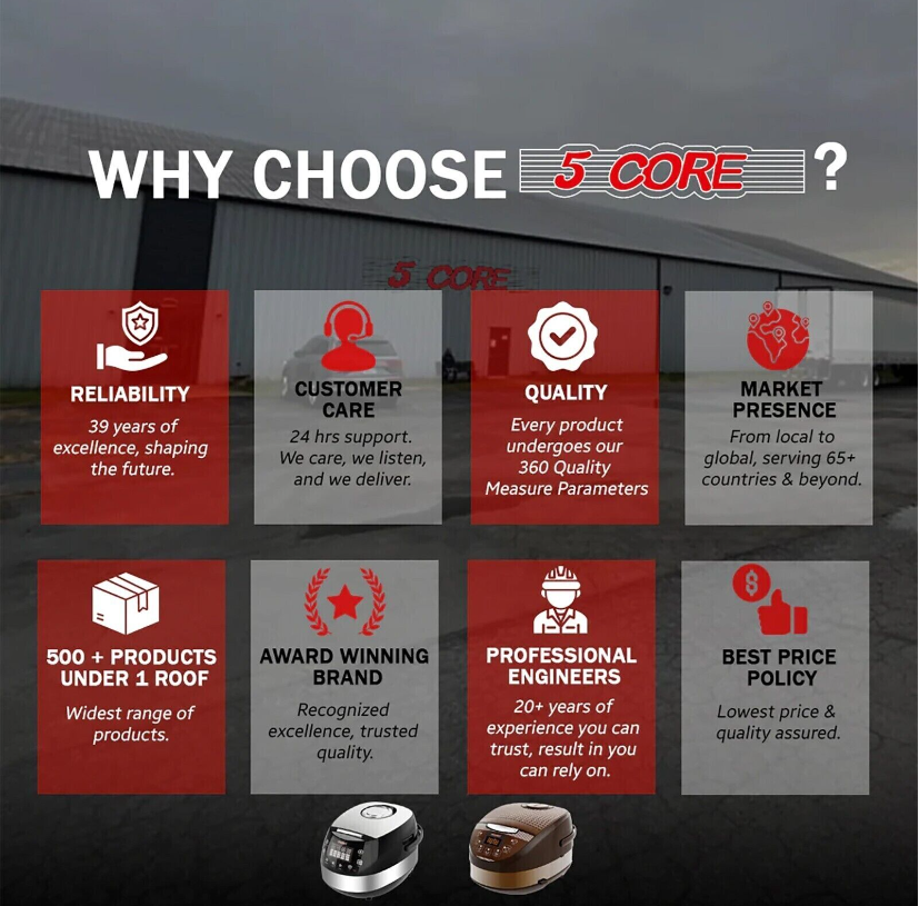 4. Upgraded Inner Pot: 5 Core brings you nothing but the best Asian rice cooker in the market, which is not only Nutritious but also 100% toxic-free because of its 8x Bonded Granite nonstick inner pot. This Rice cooker is completely dishwasher safe, 100% toxic-free, and more durable than ceramic and conventional pots.