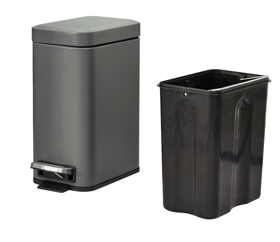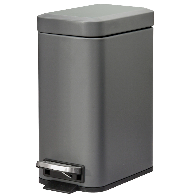5L Rectangle Compact Bin Steel Body Inner Bucket Quiet-Close Lid w/ Pedal Grey