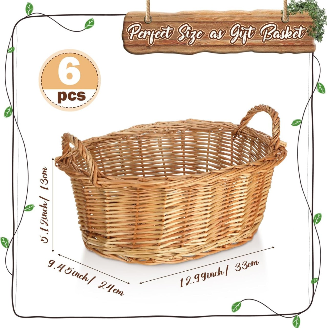 6 Pack Wicker Picnic Basket with Handles for Gifts 12.99 x 5.12 Inch Multipurpose Wicker Basket Hand Woven Harvest Basket Willow Bread Basket Empty Gift Baskets for Picnic Flower Fruit Storage