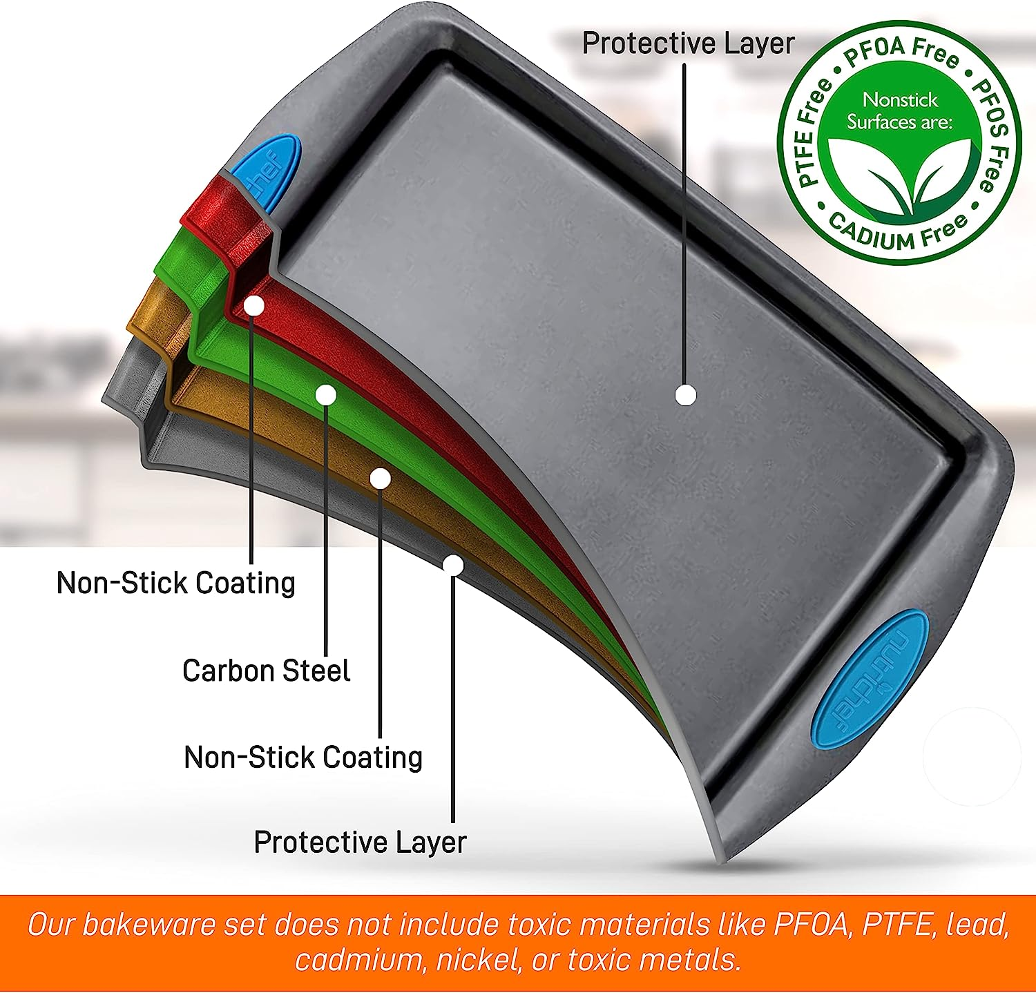 6-Piece Baking Pan Set - PFOA, PFOS, PTFE Free Flexible Nonstick Gray Coating Ca