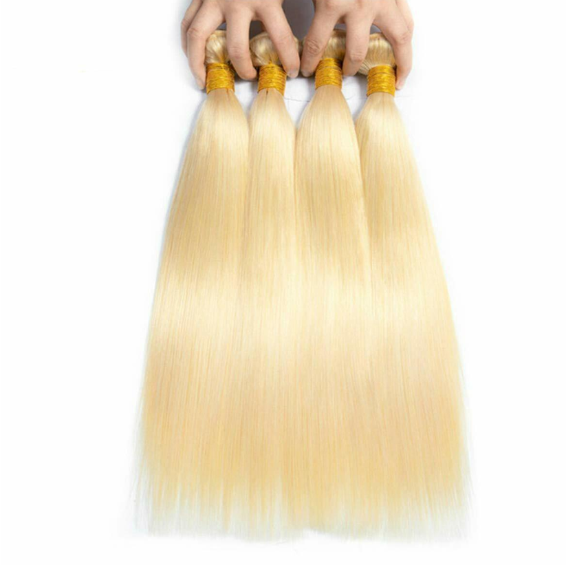 613 Blonde Hair 4 Bundles Weft Straight Brazilian Unprocessed Human Hair Weaves