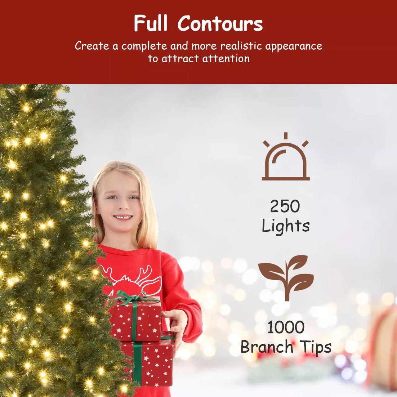 6FT/7.5FT Pre-Lit Realistic Green Spruce Artificial Holiday Christmas Tree