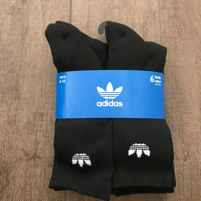 Adidas 6 Pair Pack Original Trefoil Athletic Moisture Wicking Crew Socks Black Large/8-12