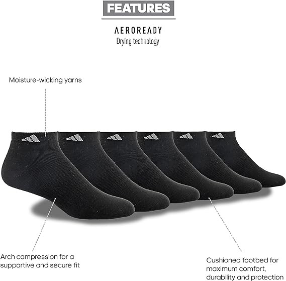 adidas Men's Athletic Cushioned Low Cut Socks with Arch Compression for a Secure Fit (6-Pair)