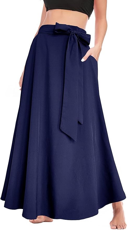 Afibi Women's High Waist Skirt Tie Front A-Line Flowy Long Maxi Skirts with Pockets
