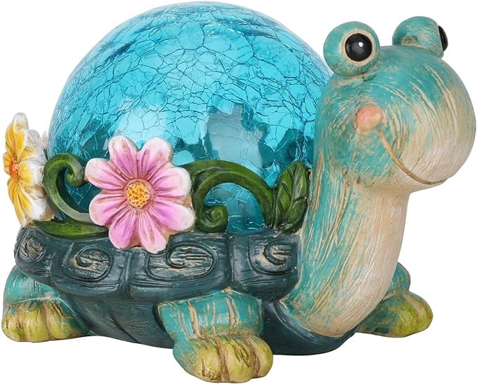 • This adorable turtle garden statue is a wonderful addition to the beauty of any backyard or garden. Plant this solar garden statue to garden, trees, flowers, flowerbed, fence, walkway or anywhere you want.