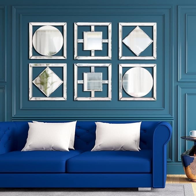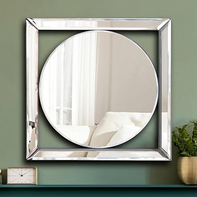 ALLARTONLY Square Mirrored Wall Decor Decorative Mirror Wall-Mounted Accent Mirrors 12x12” Mirror Elegant Bevel in Exquisite Craft. Middle Round Shape