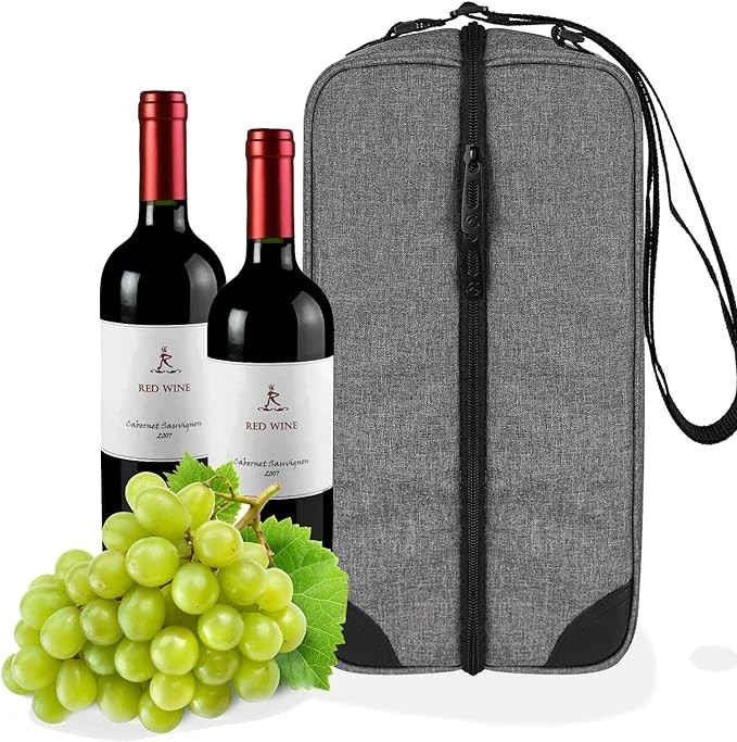 ALLCAMP Wine Tote Bag with Cooler Compartment,Picnic Set Carrying Two Sets of Tableware(Gray)