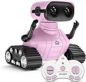 ALLCELE Girls Robot Toy, Rechargeable RC Robot for Kids, Remote Control Toy with Music and LED Eyes, Gift for Children Age 3 Years and Up - Pink