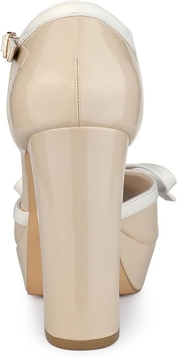 • T-Strap, Platform, Chunky Heels, Bow, Patent Leather, Buckle Closure