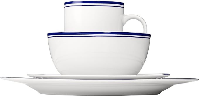 Amazon Basics 16-Piece Cafe Stripe Kitchen Dinnerware Set, Plates, Bowls, Mugs, Service for 4, Blue