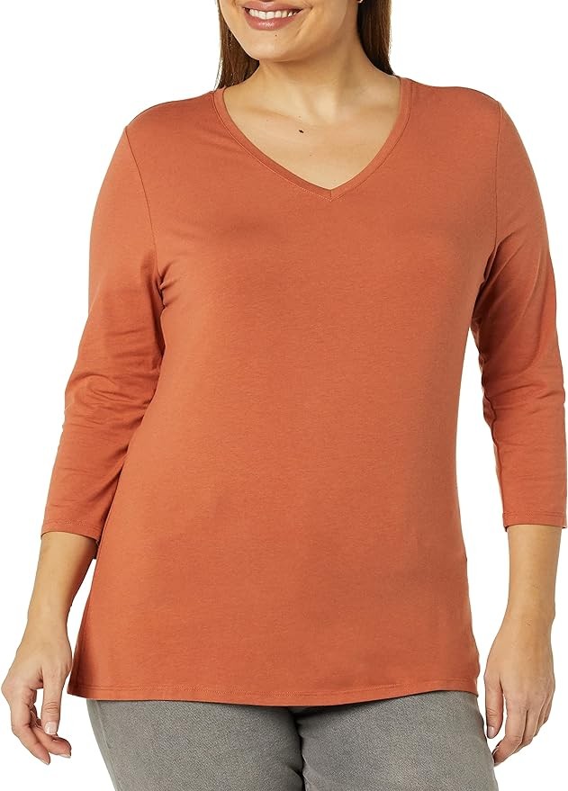 Amazon Essentials Women's Classic-Fit 3/4 Sleeve V-Neck T-Shirt (Available in Plus Size), Multipacks
