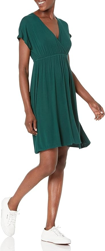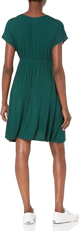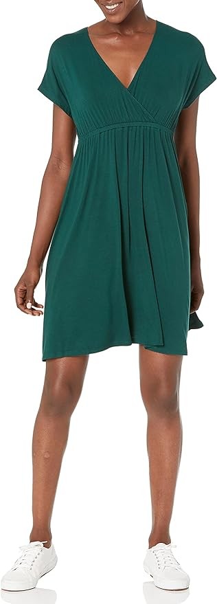 EVERYDAY KNIT DRESS: This versatile and figure-flattering flowy dress seamlessly transitions from day to night. Pair with your favorite sneakers for a day exploring the city or dress up for an evening out with Amazon Essentials Women's Sandals.