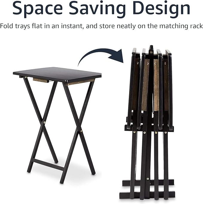 AmazonBasics Classic TV Dinner/Snack Table Set - 4 Tables with 1 Holding Rack - Black
