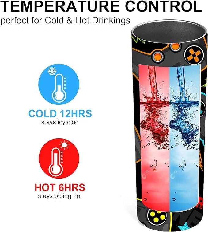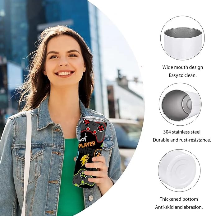 ATHAND Gifts for Gamer Men Women, Gamepad Game Insulated Skinny Tumblers with Lid,The Best Player 20 Oz Travel Vacuum Coffee Mug,Funny Quotes Video Game Cups Men Friends