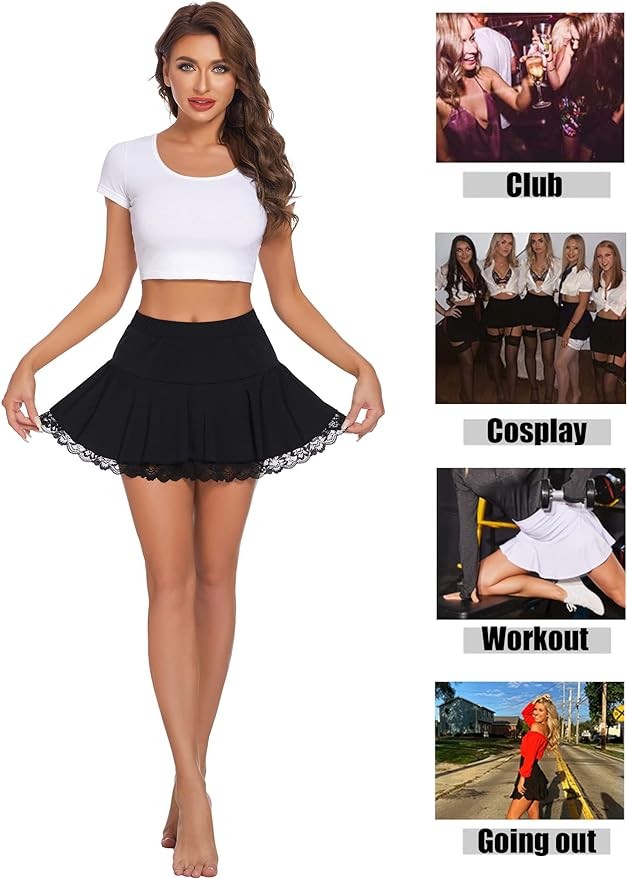 Avidlove Women Pleated Mini Skirt Sexy Lace Ruffle Solid Skirt Lingerie Short Skirts