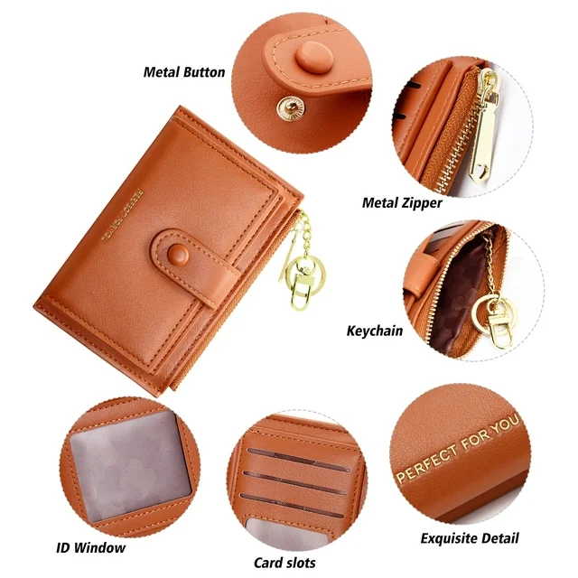【Leather Compact Card Holer】:This slim bifold wallet has 8 card slots and 2 ID window, it looks mini, but can hold a lot. Our card holder wallet keeps your cards organized, protected, and easy to access your most important bank cards, transit pass, ID, business cards, and some emergency cash. Specially, our wallet add a zipper pocket to store your coin or cash.