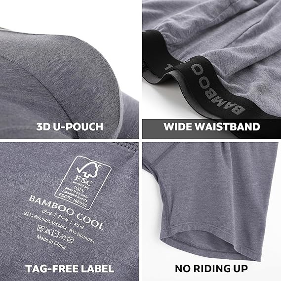 BAMBOO COOL Men’s Underwear boxer briefs Soft Comfortable Bamboo Viscose Underwear Trunks (4 or 7 Pack)