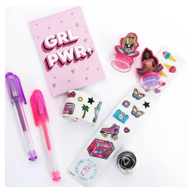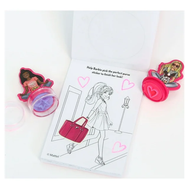 • Includes an activity journal, 2 gel pens, 2 mini Barbie character stampers and 3 sticker rolls.