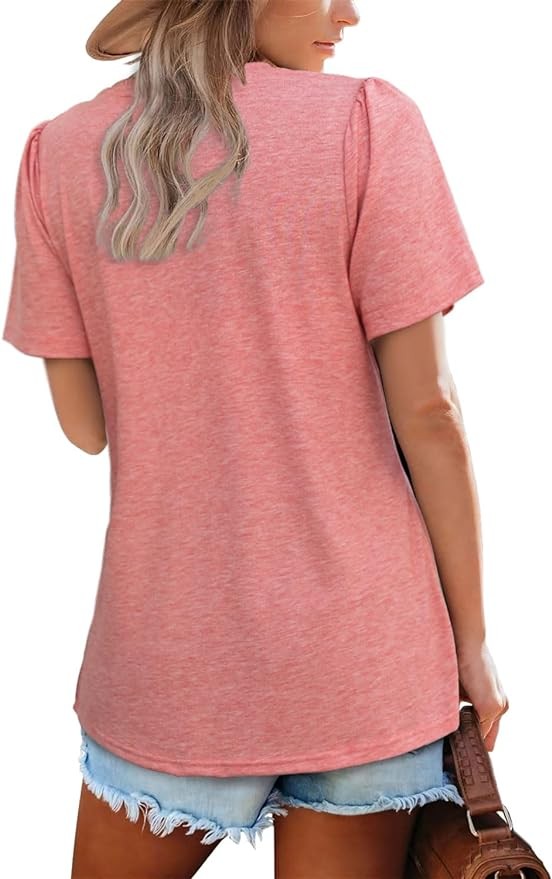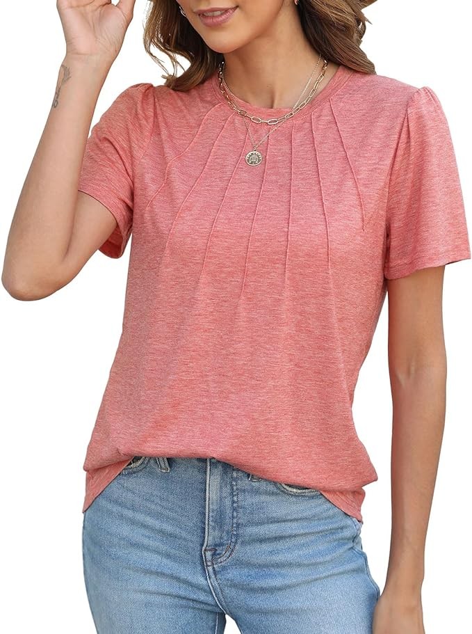 Design: Short puff sleeve top/classic round neck/loose fit/fashion casual/tunic length/front pleated Top. The shirts are never out of style.