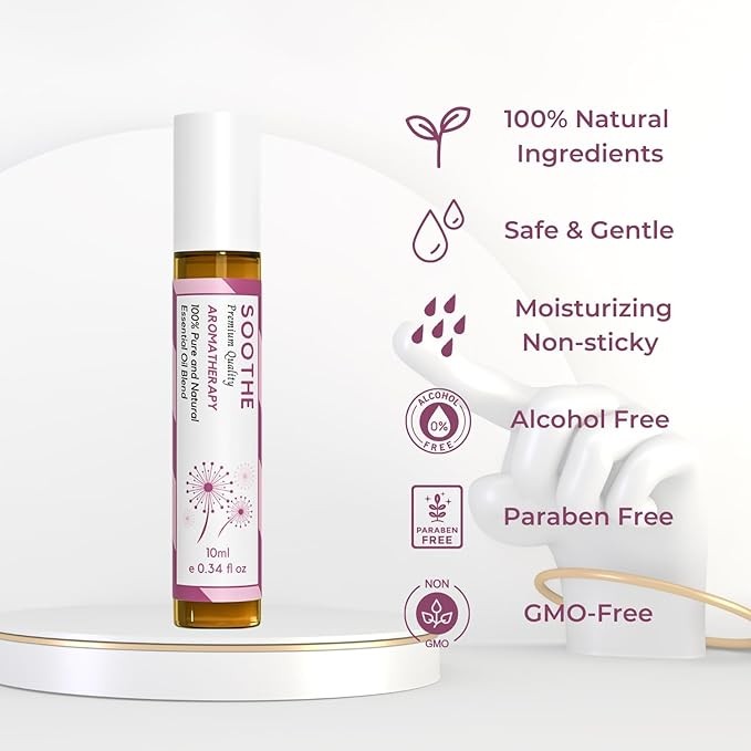Benatu Soothe Blend Essential Oil Roll On (Infused with Lavender, Geranium, Tangerine Oil)- Travel Size Relaxing Roller for Body Topical Massage, Natural Scent Aromatherapy Gift for Women & Men 10ml