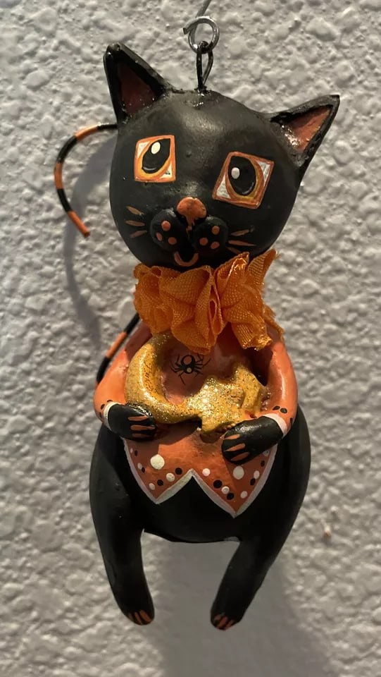 Bethany Lowe Leeann Kress Halloween Moon & Stars Cat Ornament—Retired