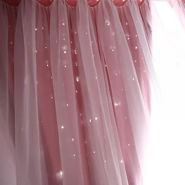 Blackout Curtains, Romance Double-Deck Cloth Thermal Insulated Panels Floor-Standing Curtain Star Hollow Curtain Drape for Living Room, Bedroom, 39.37"x78.76"