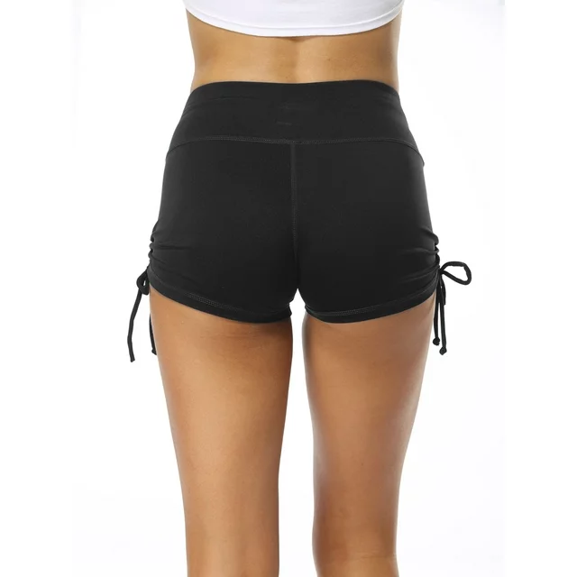 High waist athletic shorts with adjustable side ties for the ease of movements and desired length.