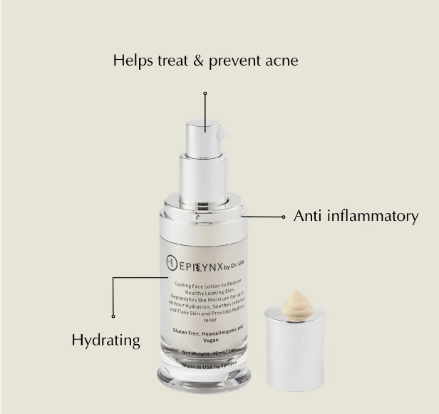 This face cream is gluten-free, hypoallergenic, and cooling. It uses Aloe Vera, Rose Water, and Baobab Protein to calm sunburn, reduce redness, and restore healthy skin.