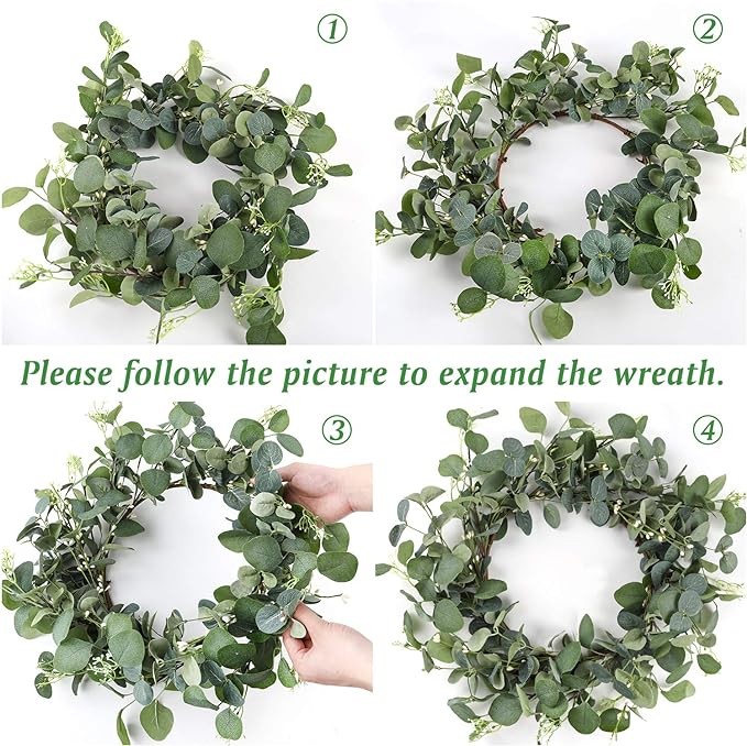 Size: Fully expanded eucalyptus wreath, the inner diameter is about 25cm/10 inches; outer diameter is about 48cm/19 inches.