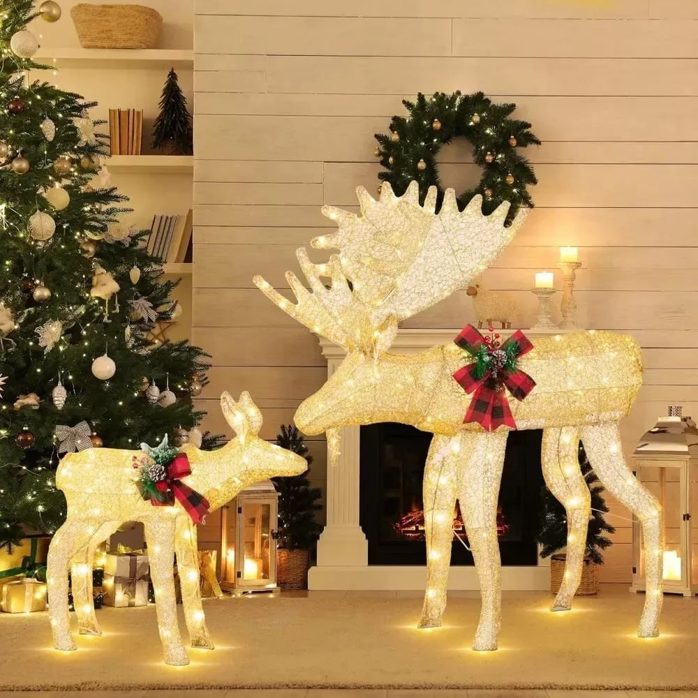 Christmas Reindeer Moose Family Outdoor Holiday Decoration W/Stakes and Zip Ties