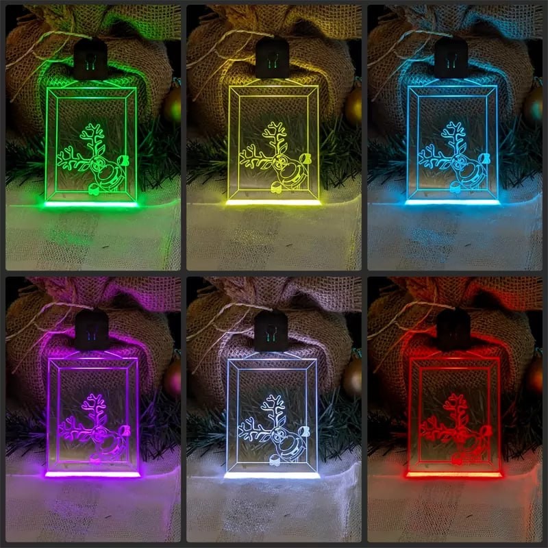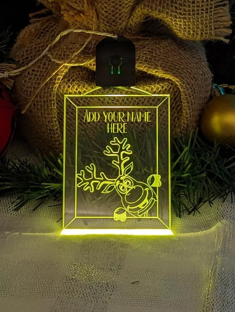 Christmas Reindeer Personalised Name Bauble LED Light Hanging Tree Decoration