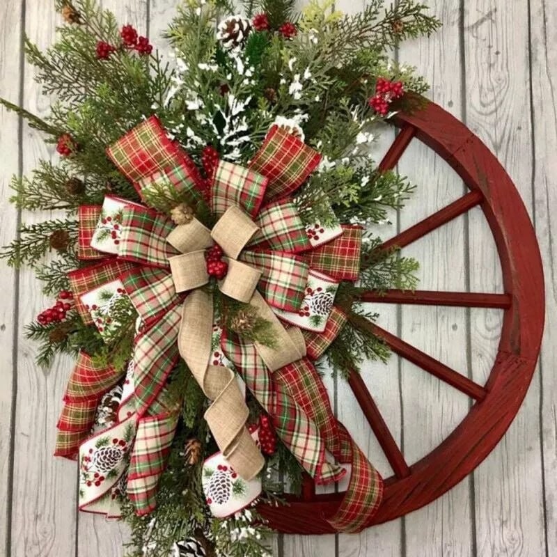 Christmas Wreath Red Wagon Wheel Xmas Wreath Front Door Hanging Ornaments