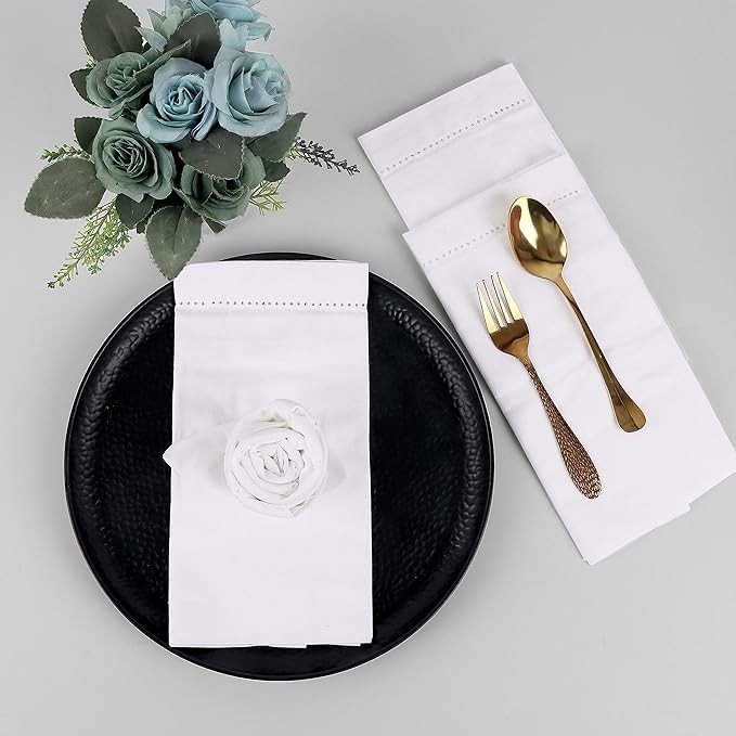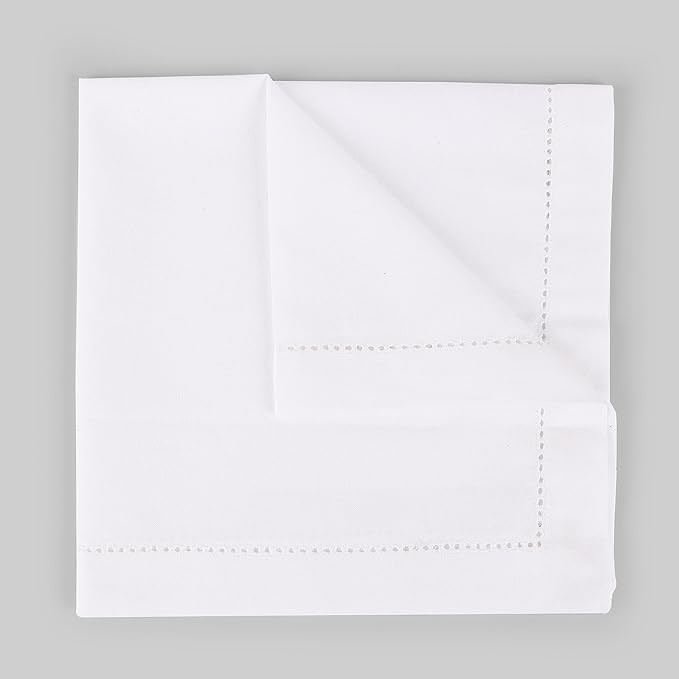 Cloth Dinner Napkins in Cotton Flax Fabric with Hemstitched & Tailored Mitered Corners - 18x18 Inches (Set of 12, White) Cotton Cloth Dinner Napkin, Wedding Napkins, Cocktails Napkins