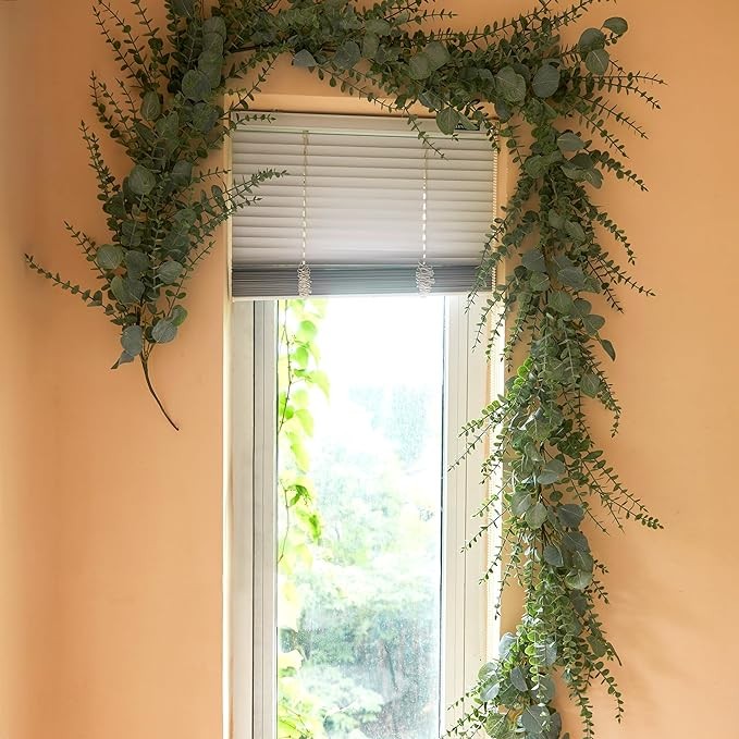 【Dimentions】 Greenery eucalyptus garland totally length is 108 Inch/9 Ft. This eucalyptus garland has many branches,Looks very realistic and Three-dimensional.