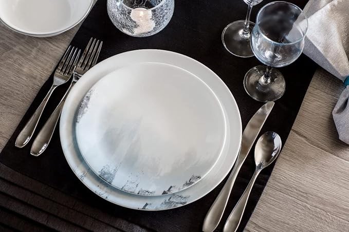 • Set includes 4 each: 26cm Dinner Plates, 22cm Luncheon Plates, 18oz cereal Bowls