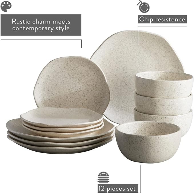 • UNIQUE TEXTURE - The handcrafted texture of Orion 12-piece dinnerwareset with its reactive glaze finish adds an industrial charm to your dining experience.