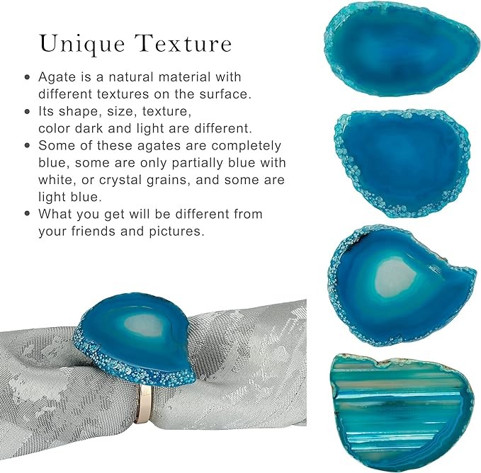 • ✔Natural and Unique Agate: The napkin holders for cloth napkins are made of natural agate. Each piece of agate is different in color, shape, size, pattern, dark and light. They are good for farmhouse napkin rings