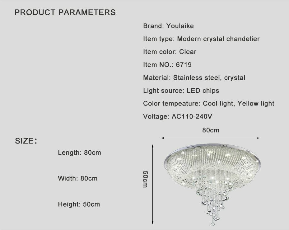 Crystal Chandelier Ceiling Living Room Lobby Lamp Luxury Lighting Fixture Remote
