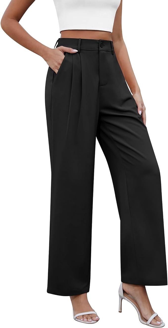 CZYINXIAN Women's Casual Business Work Wide Leg Pants Flowy High Waisted Suit Pants with Pockets