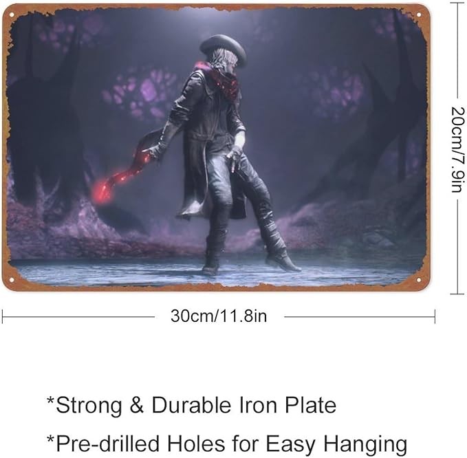 Devil May Cry Video Game Dante Devil May Cry 5 Vintage tin poster, suitable for bars, cafes, offices, restaurants, family gardens, shops, clubs, logo gifts 12 X 8 inches